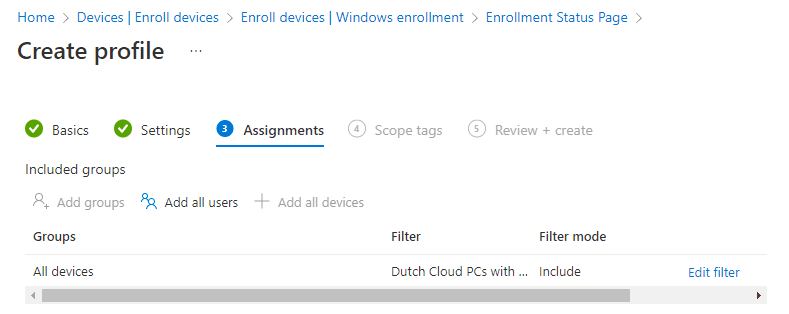 - Choose: Include filtered devices in assignment