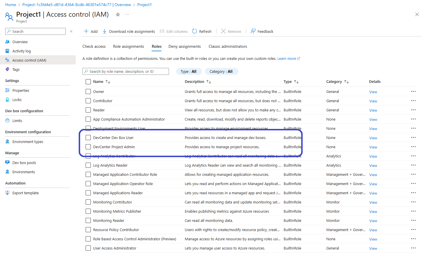 I will skip the part of assigning user to the DevCenter Project Admin role since there really is no difference in the configuration process.