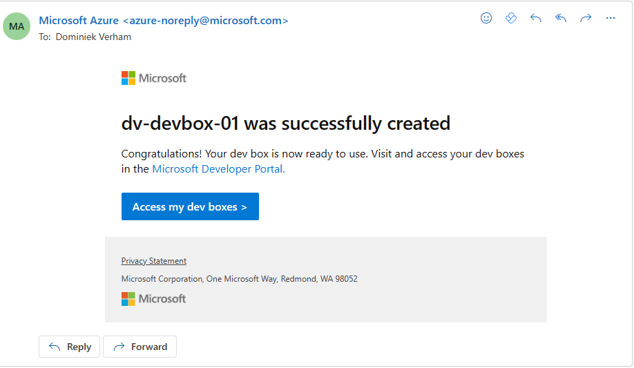 We have now created the bare minimum to get started with Dev Boxes. I’ll come back to some other options later on in this post.