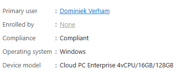 Once device will identify as a Cloud PC Enterprise and two others will identify as a Microsoft Dev Box.
