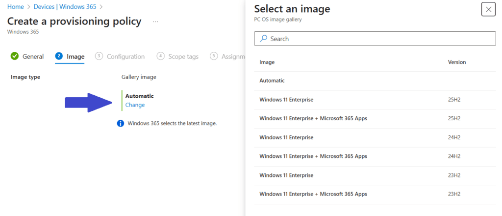 Now it’s time to create a provisioning policy. Navigate to Devices, Windows 365 and select the Provisioning policies tab and create a new provisioning policy.