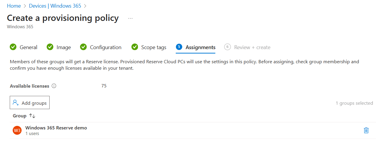 - There is a 7 day waiting period the first time users are assigned to the Windows 365 Reserve Cloud PC provisioning policy.