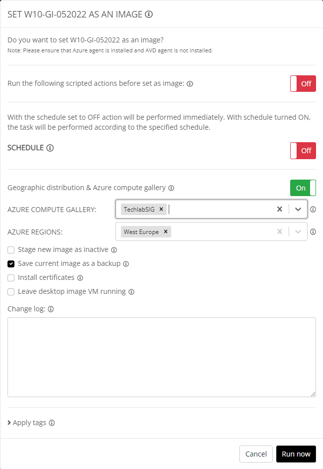 For us to be able to use it an image for session hosts, we need to ‘Set as image’ option from the dropdown list.