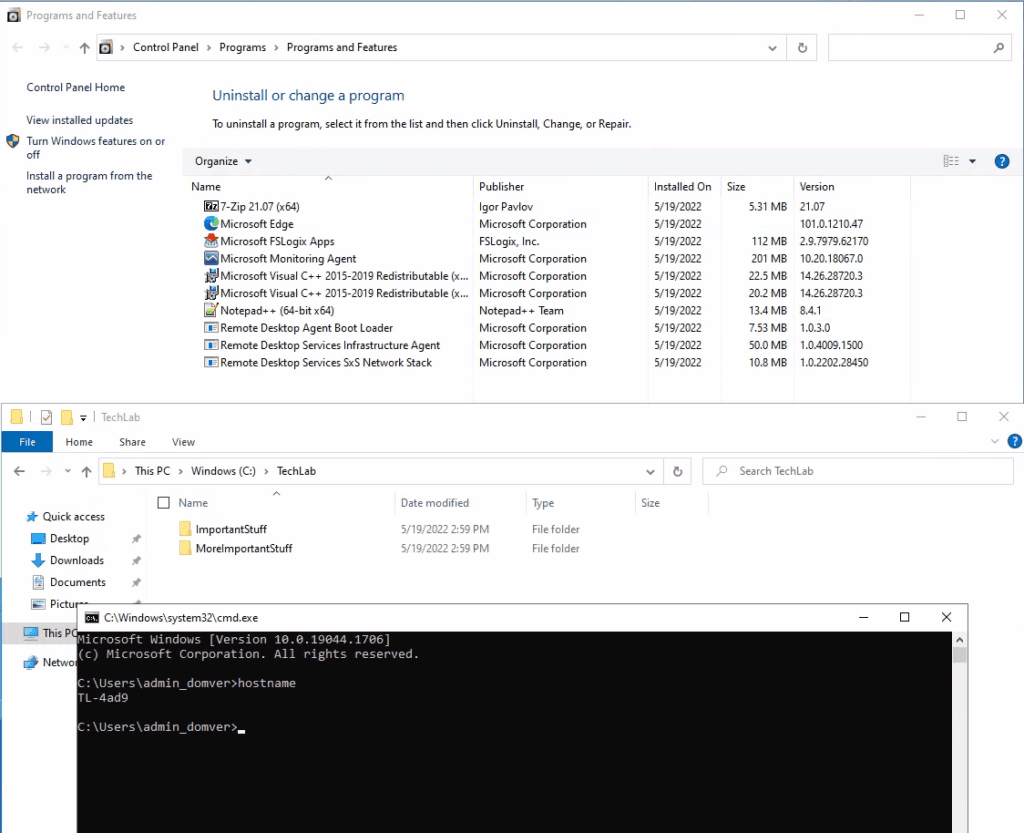 We can see that both apps (7zip and notepad++) are installed. The important stuff is still on the disk and we can see it’s a session host instead of the golden image.