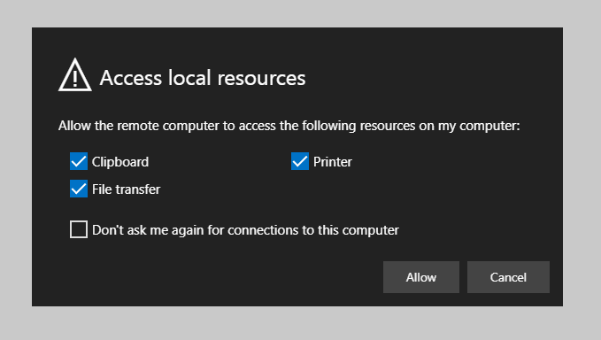 Click once on the resource to connect. You will be asked which local resource can be accessed by the web client.