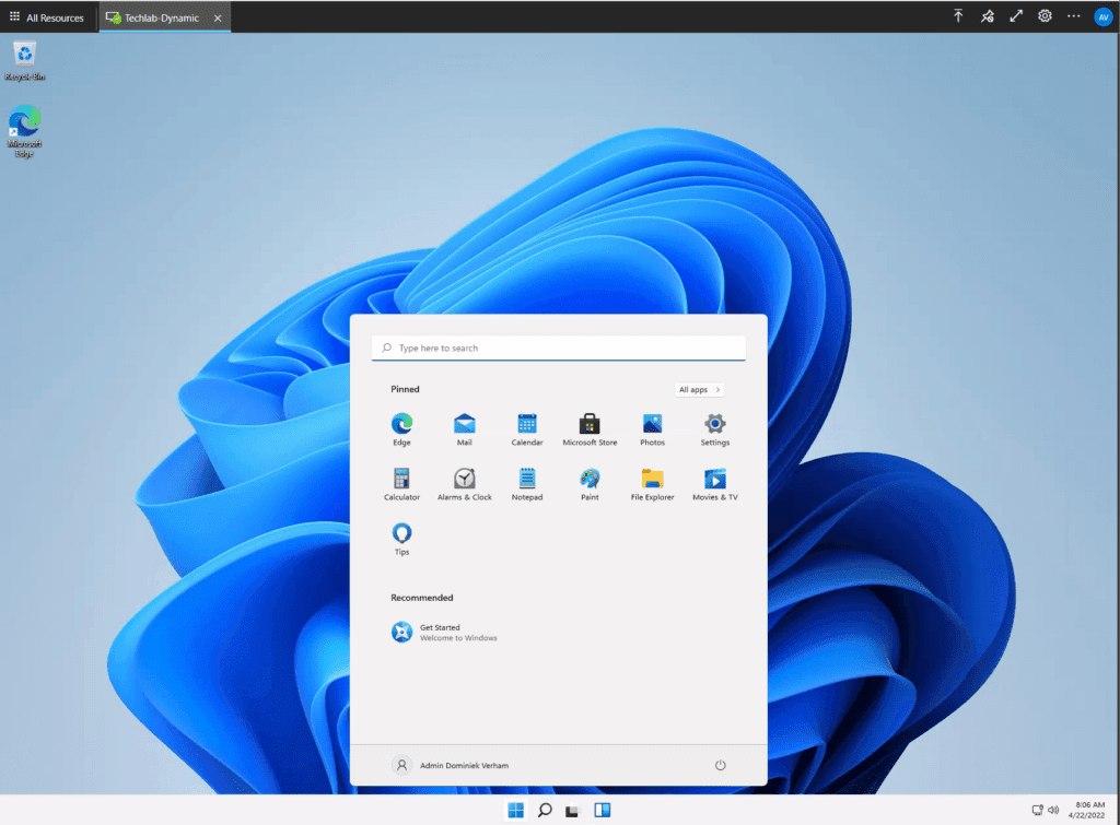 In this series we only created one Dynamic Host Pool and assigned it to our user account so we see the assigned resource in our client. Double-click to connect to Azure Virtual Desktop.