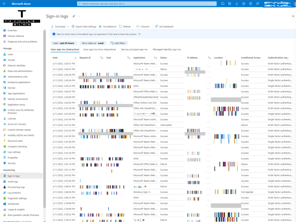 In the Azure portal, open up the Azure Active Directory blade and click on Sign-In logs from the Monitoring group.