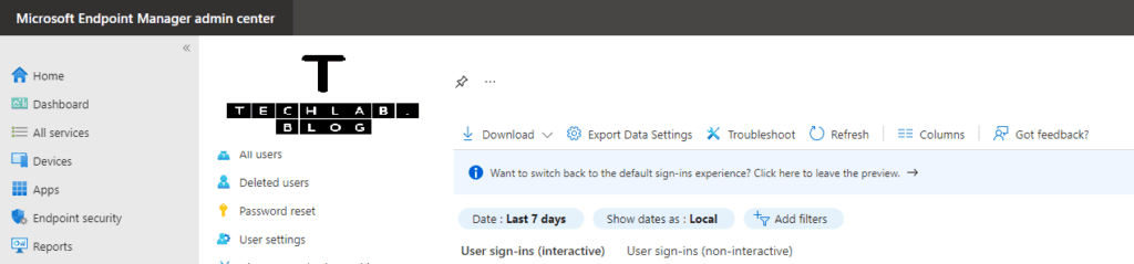 It’s worth noting that sign-in events can be viewed in the Endpoint Manager portal. Open the users blade and click on the Sign-In logs under the Activity group. This blade opens the same blade from Azure AD.