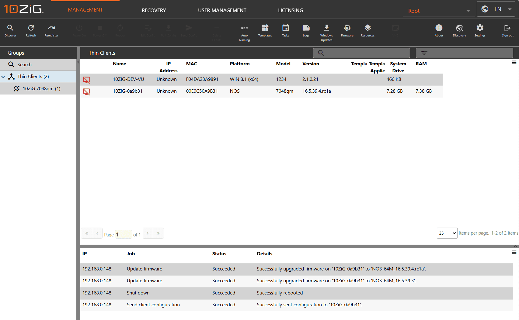 Thin and zero clients can be managed locally which is fine for local support actions. 10ZiG helps you out with the 10ZiG Manager which is a free tool that you can download on their website