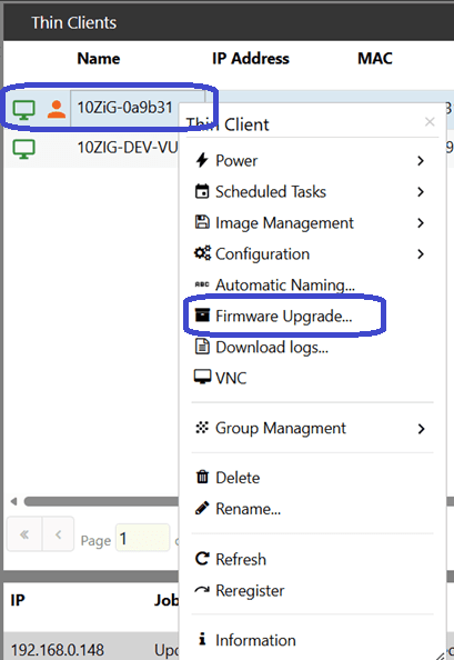 Let’s find out how to update the local device. From the 10ZiG Manager console, select the device you want to update and select Firmware Upgrade… in the context menu.