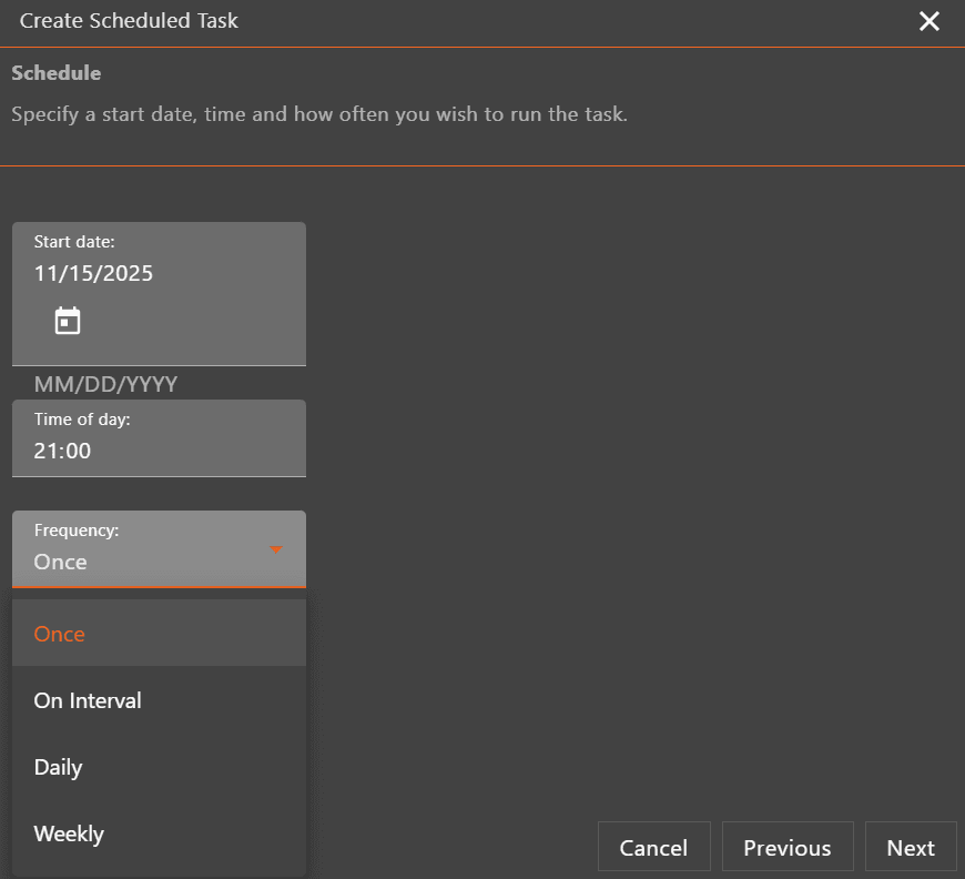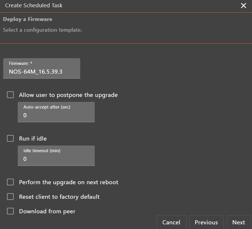 Alternatively you can create a scheduled task to upgrade multiple devices in bulk. Select the desired devices, from the contextmenu select Scheduled Tasks, Add…