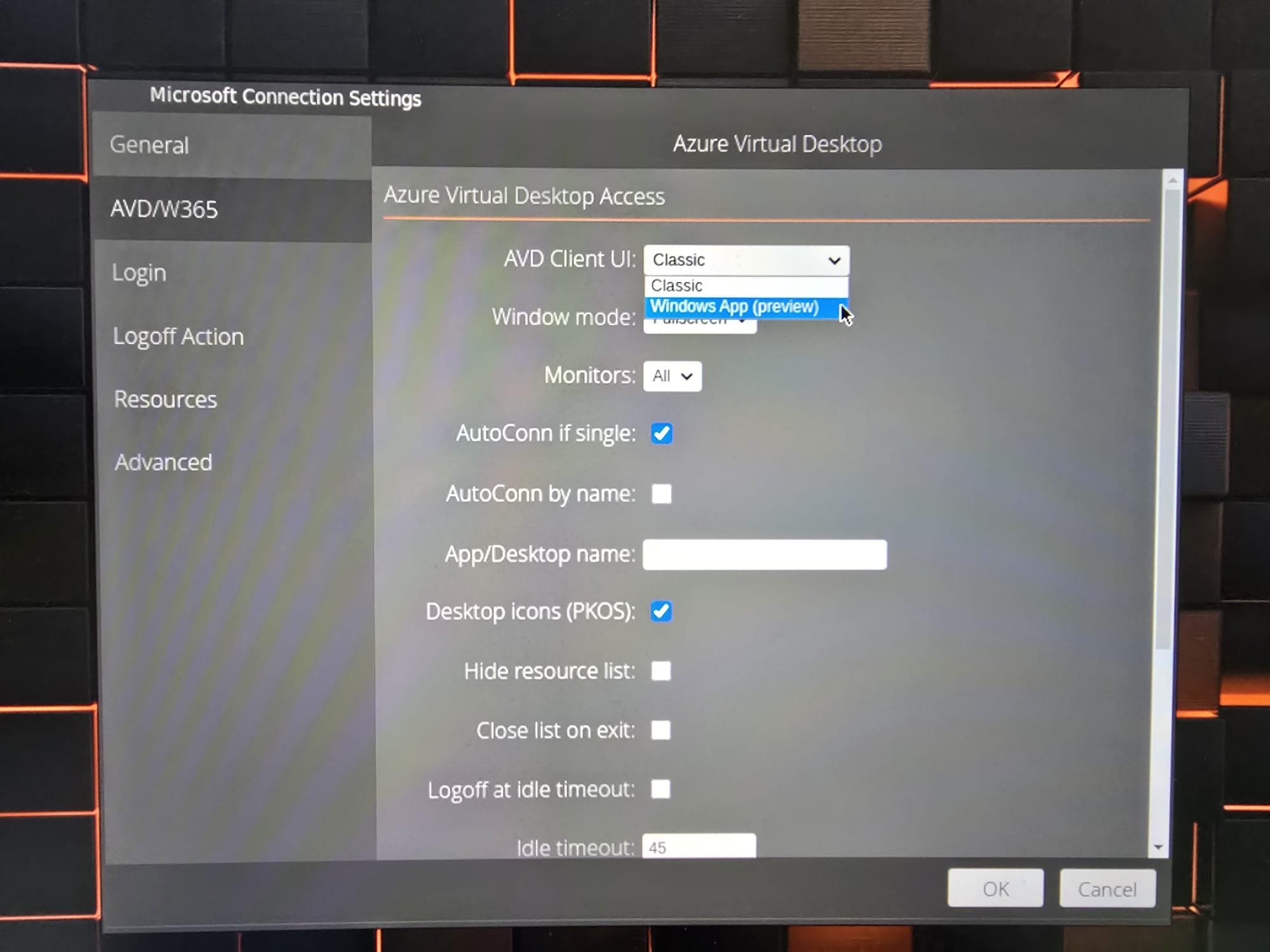 • First go to AVD/W365 and select Windows App (preview) as the AVD Client UI.