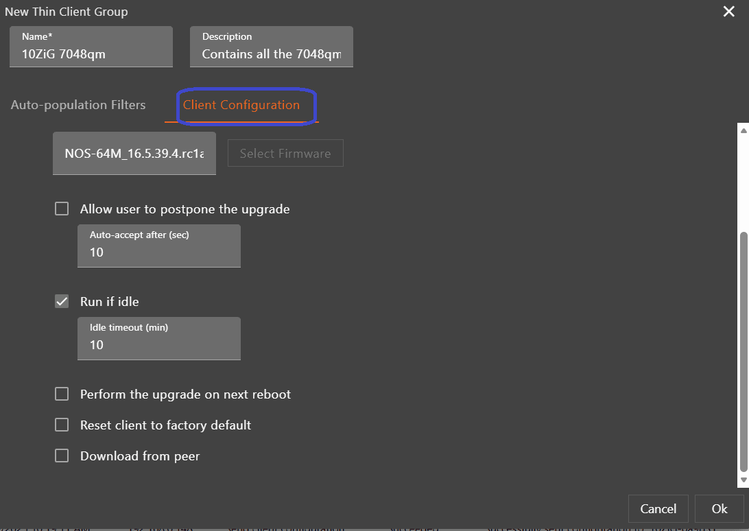 • From the 10ZiG Manager, create a group with auto-population filters. Set and apply the firmware to the group configuration to automatically update the firmware of members devices.