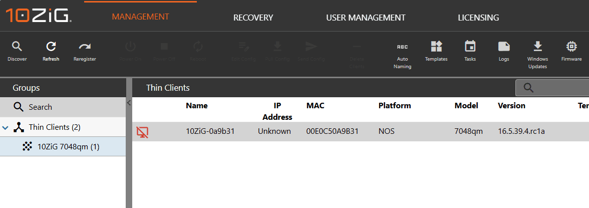 Let’s continue with updating the 7048qm zero client to the newest firmware that contains the new Windows app gui using 10ZiG Manager.