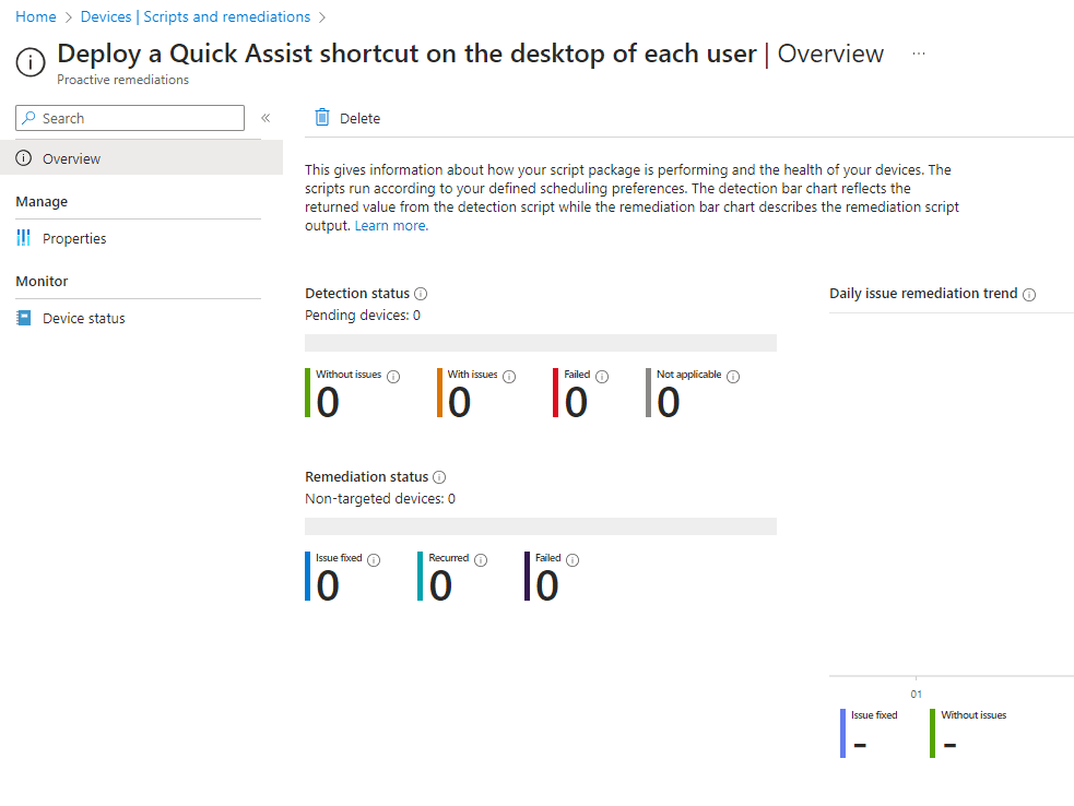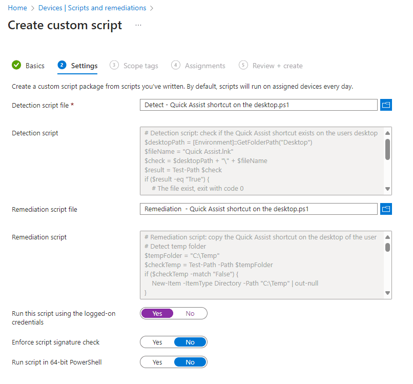 There are a couple of ways to deploy a shortcut to the desktop of the user. In this post I will zoom in on using Intune remediations to check if the Quick Assist shortcut is available on the users desktop. And if it’s not, it will create a shortcut. There are a couple of small tricks in this post, so I hope you’ll like it!